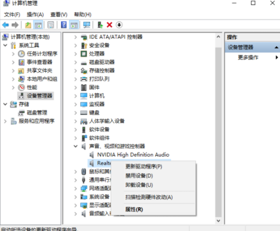 1、打开电脑的计算机图标,点击管理,点击设备管理器,查看声音、视频和游戏控制器,然后右键就检查声卡在设备管理器中有没有被禁用,有的话就开启即可。