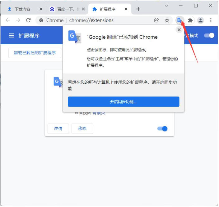 6、这样浏览器插件就安装完成啦,右上角可以看到对应插件的小图标方便操作。