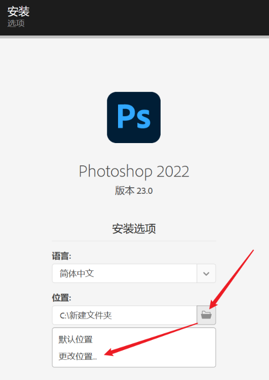 3、进入安装过程,语言默认简体中文,更改安装位置,建议安装在除C盘以外的任意一个磁盘。