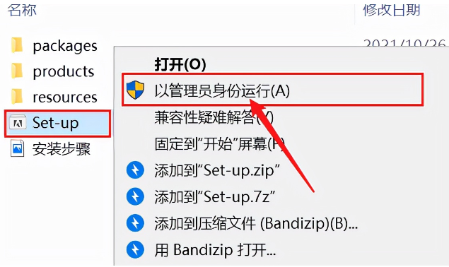 2、打开文件夹,找到【set-up】文件,鼠标右击【以管理员身份运行】。