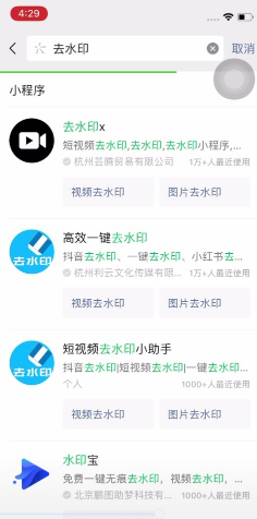 3、然后借助微信,搜索“去水印”小程序。