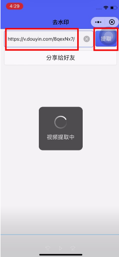 4、进入到小程序,粘贴视频链接,点击提取。