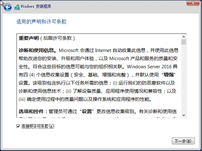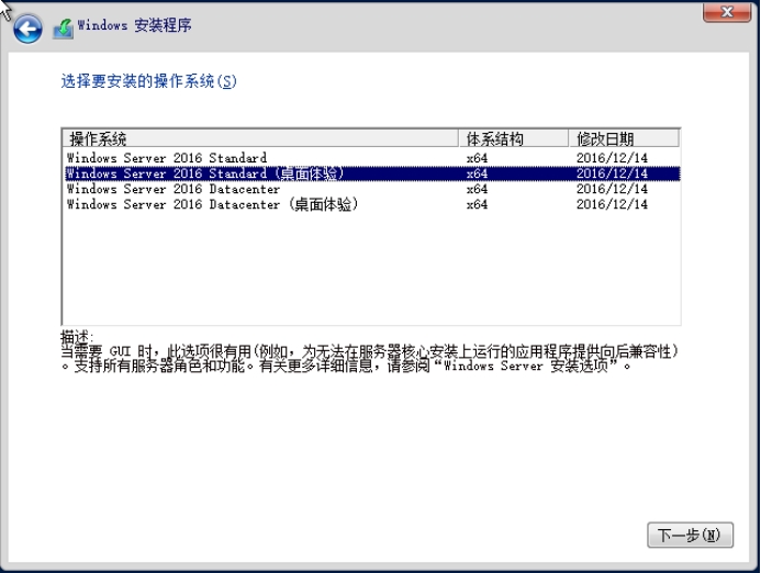 5. 选择“Window Server 2016 Standard(桌面体验)”,点击“下一步”。