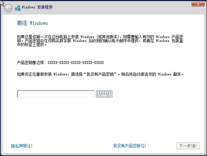4. 选择“我没有产品密钥”。