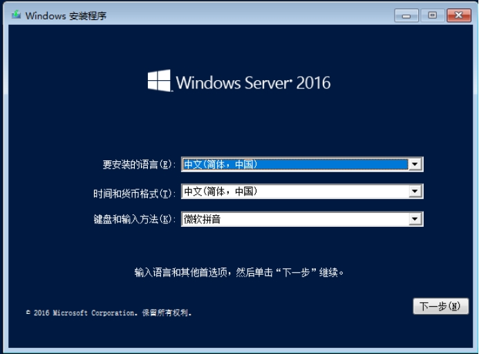 2. 启动服务器,进入安装界面,点击“下一步”。