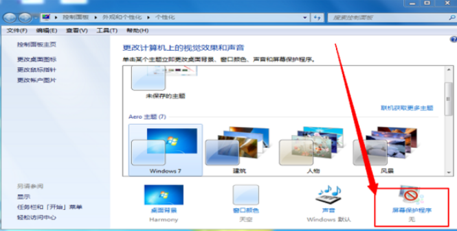 2、看到屏幕保护程序点击。