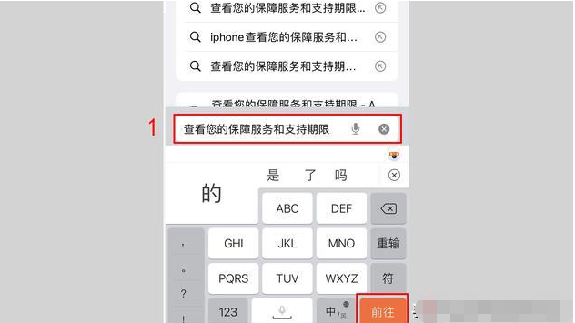 1、打开苹果手机的浏览器,输入“查看您的保障服务和支持期限”进行搜索。