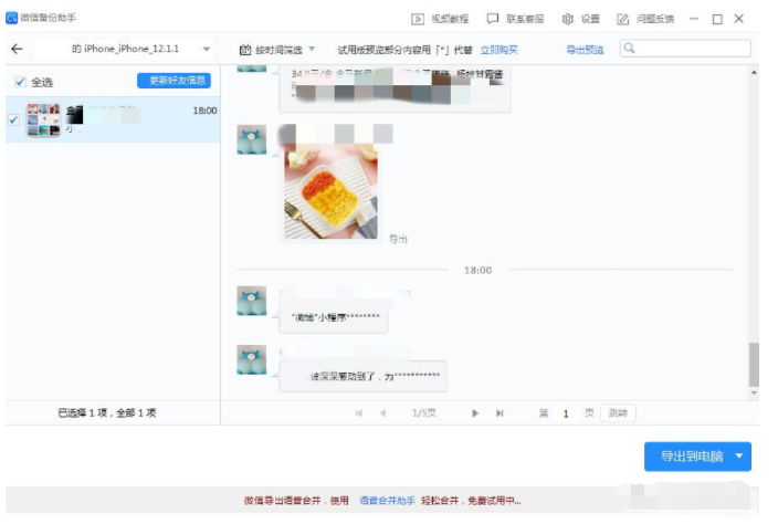 微信备份助手需要先用微信自带的备份功能将聊天记录备份到电脑上,然后读取备份记录,所以可以单独备份单个好友的聊天记录,可以查看图片、视频、语音、表情、链接分享等等,可以将聊天记录全部导出,也可以选择性的单独导出文字、图片、语音或者视频,但这是一款收费软件,最便宜的也要199元/年,不能购买永久使用权,所以成本比较高,土豪随意。