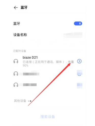 在蓝牙设备页面点击【设备】详情;