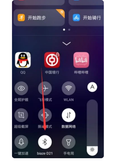 在手机快捷中心打开【蓝牙】功能;
