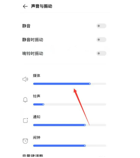 然后在设置界面的【媒体】右侧进度条调节蓝牙音量即可。