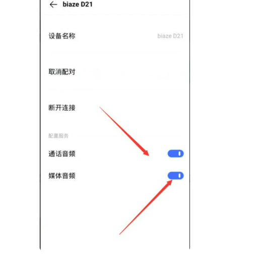 3、开启蓝牙耳机的【媒体音频】和【通话音频】权限。