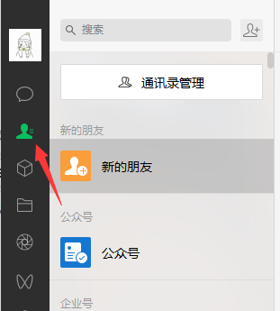 1、点击微信电脑版的左侧菜单栏,找到通讯录点击打开。