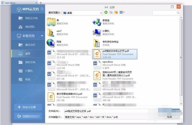 2、在打开的窗口中找到需要打开的pdf文件,选中后打开即可。