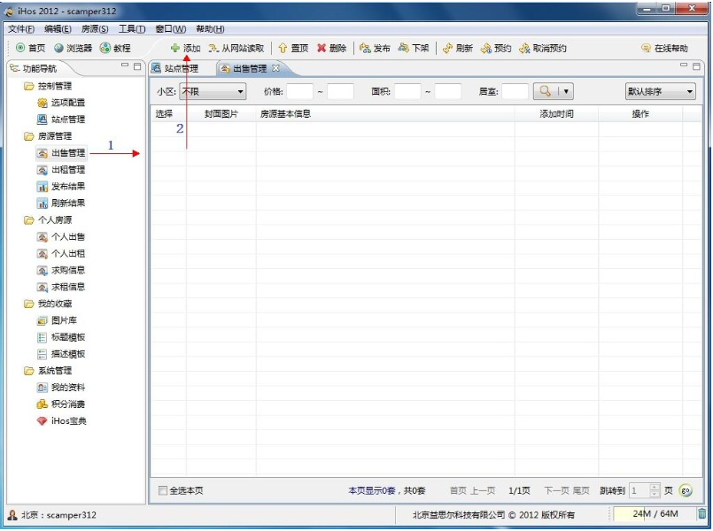 2、然后就可以打开ihos登录软件,点击站点管理,登录房源平台账号。