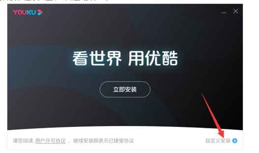 1、下载优酷视屏客户端,打开安装程序,选择“自定义安装”。