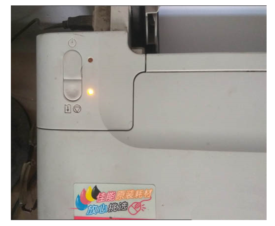 2、此时打印机机箱上的黄灯一直亮着,绿灯偶尔一闪烁。