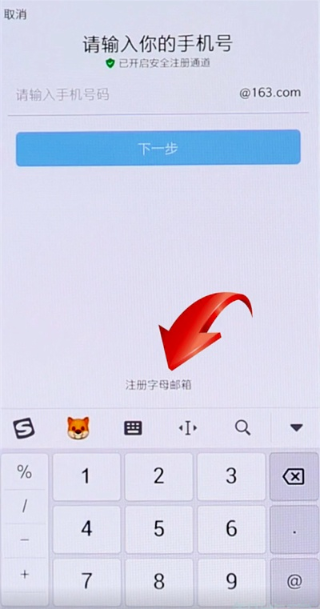 2、继续点击下方【注册字母邮箱】。