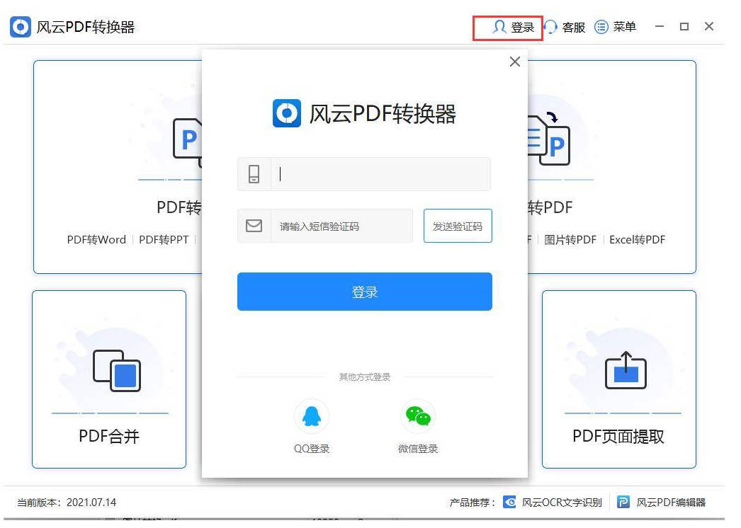 1、下载并安装风云PDF转换器,双击运行软件并登入账号。