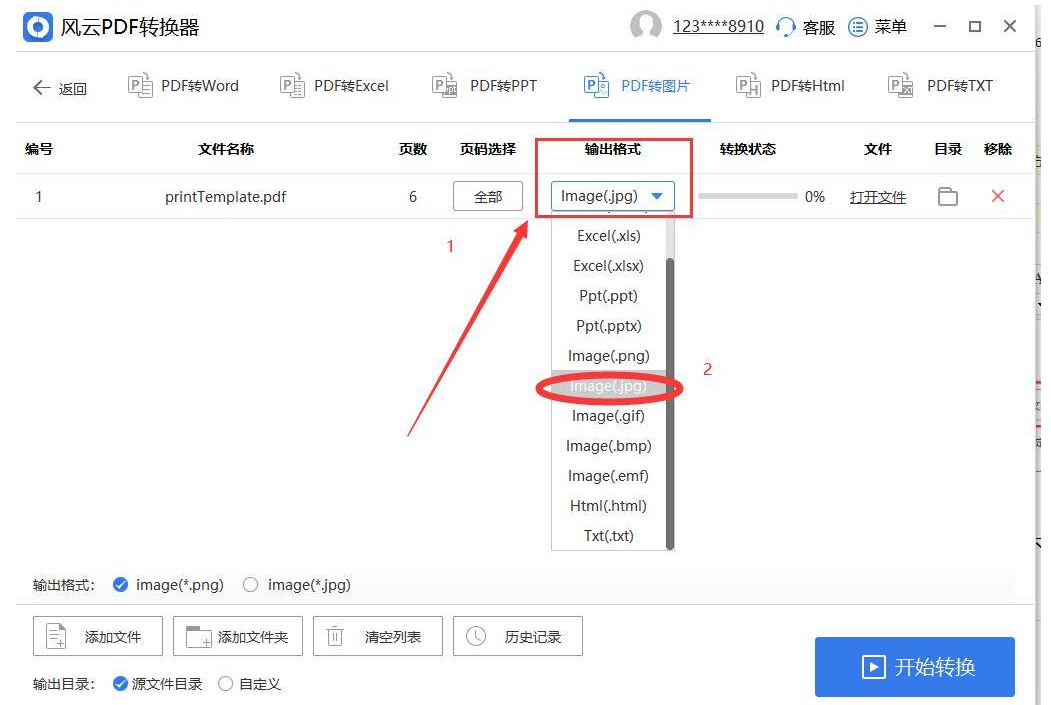 4、在输出格式中,点击下拉框,选择【Image(.jpg)】选项。