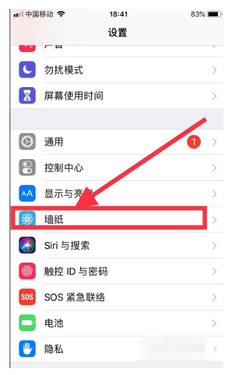 2、进入设置主页后,点击【墙纸】。