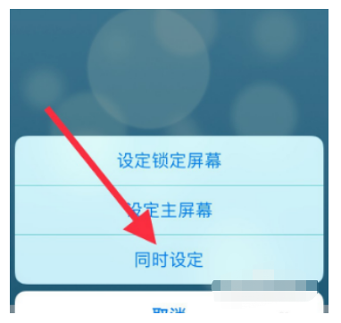 6、在墙纸预览的右下角点【设定】,出现上拉菜单,选择【同时设定】即可。