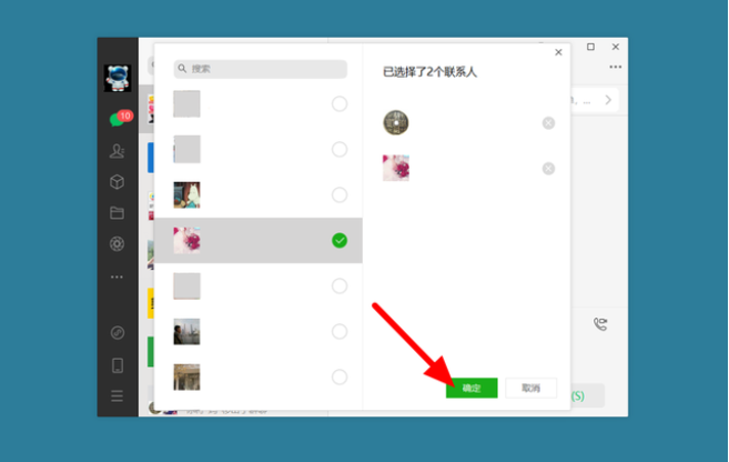 2、然后来到选择界面选择需要加群的好友,点击确定就创建群聊成功了。