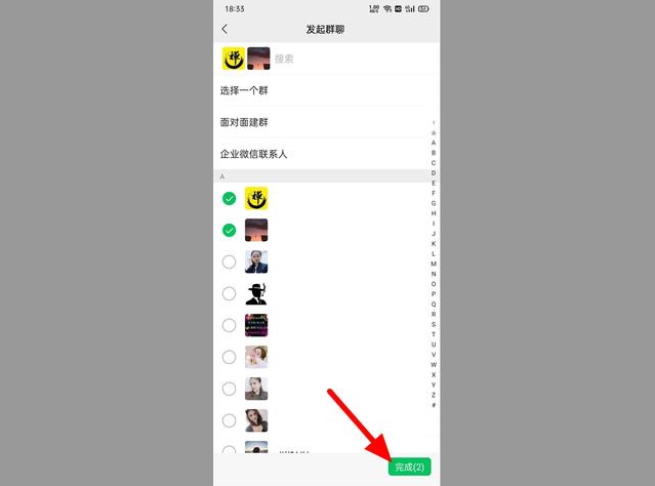 1、创建群聊至少需要选择2人,才可以完成创建。