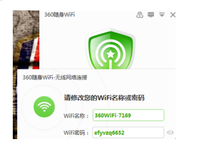 6、电脑桌面中就会有一个“360随身wifi”的窗口。对名称和密码做以修改。点击右边的“修改”。