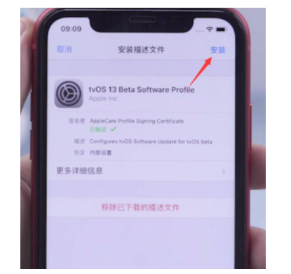 3、点击底部弹出的安装,确定重新启动手机即可。