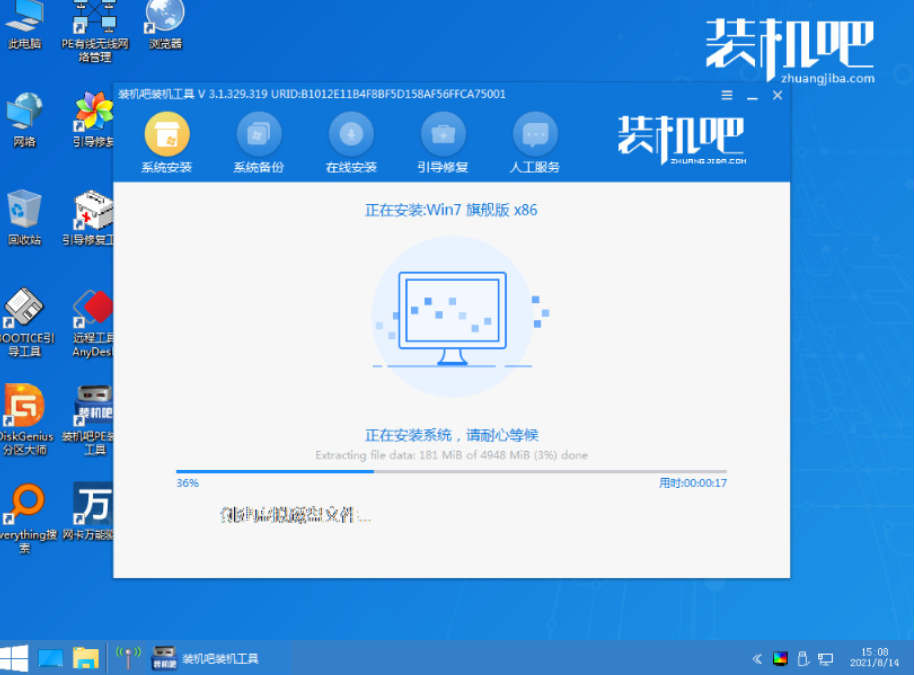 5、进入pe系统后打开装机吧装机工具,选择系统安装到系统盘c盘。