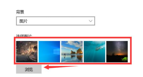 3、进入后,选择想要的桌面壁纸。如果要用自己的壁纸,可以点击“浏览”。