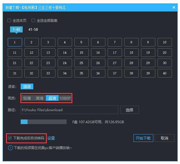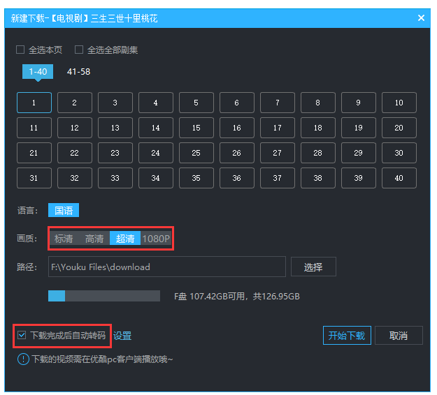 3、勾选下载完成后自动转码后的设置。