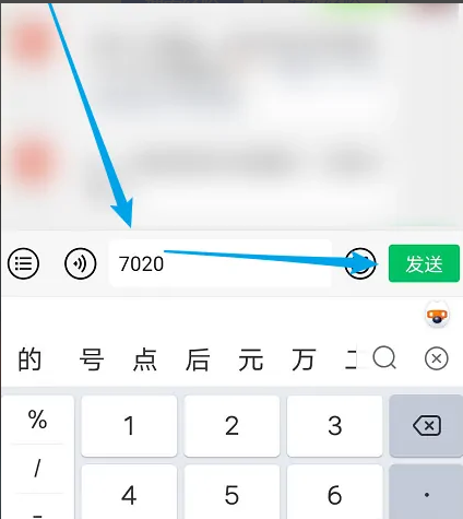 4、在输入框中输入【7020】数字,点击发送。