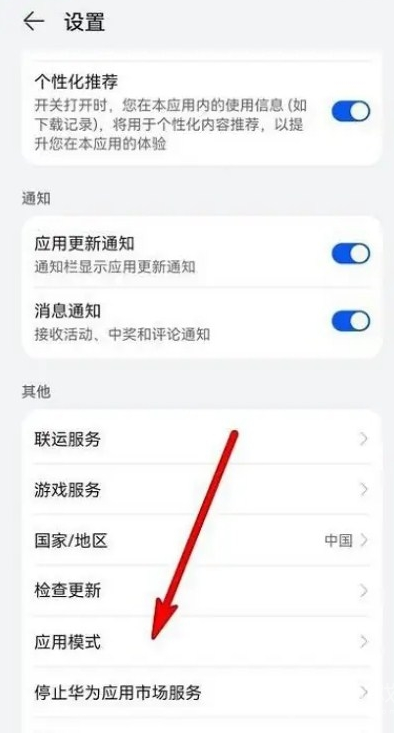 华为应用市场设置应用模式