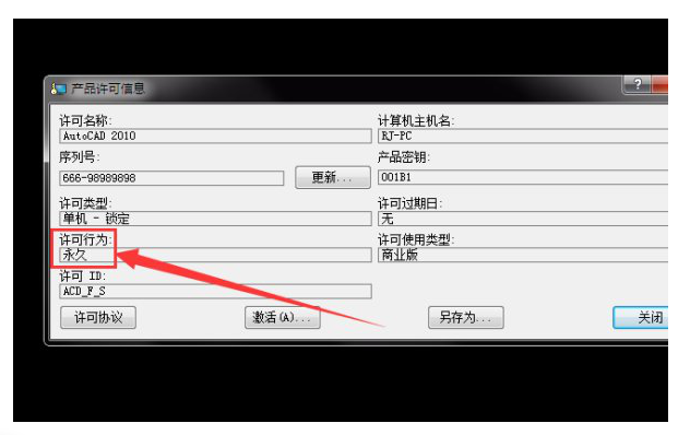 10、重新打开产品信息可以看到许可信息变成了永久。