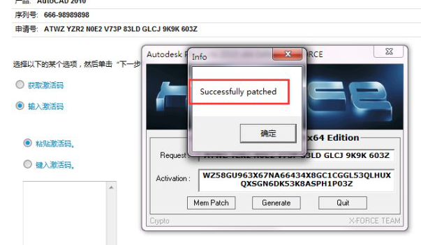 8、粘贴到CAD2010注册界面,点击下一步;