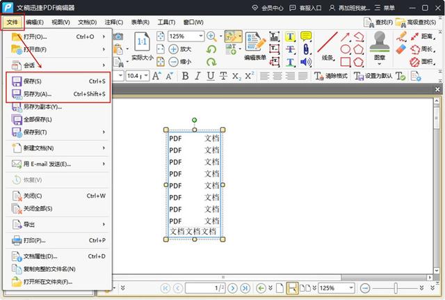 编辑完毕我们点击右上角的“文件”——“保存”选项进行保存即可,也可以另存为其他文件。