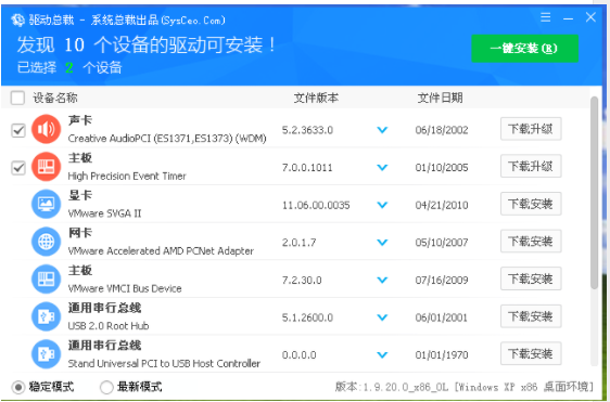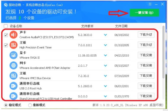 3、选择我们想要驱动安装或更新的软件。点击页面右上方【一键安装】。