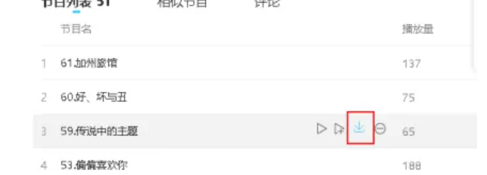 2、将鼠标点击需要的歌曲,点击出现的向下箭头。