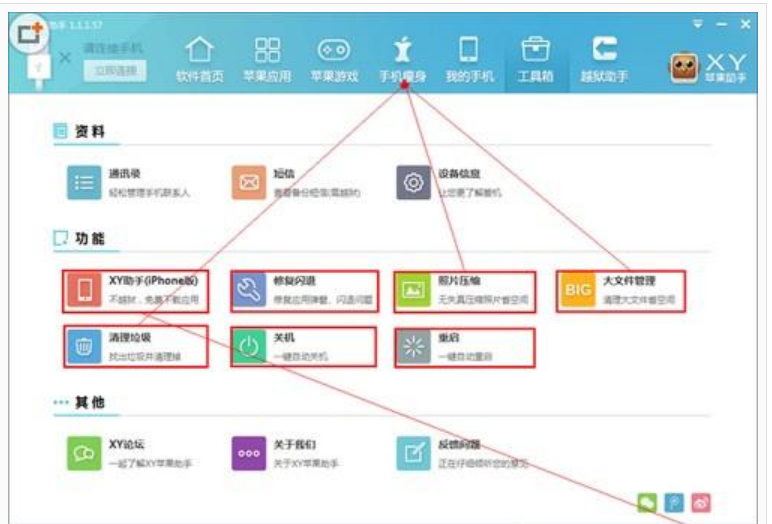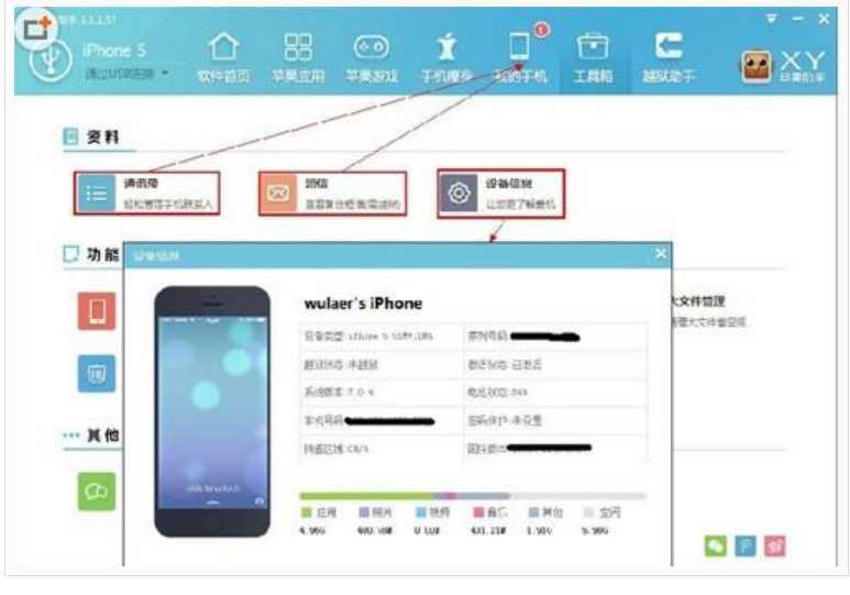 xy苹果助手工具箱怎么使用?XY苹果助手的工具箱页面分为:资料,功能,其他三部分。资料中包含:通讯录,短信,设备信息。下面就跟着小编来体验一下吧!