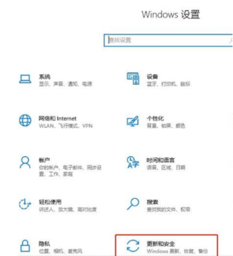 2.当我们进入“Windows设置”主页面后,单击"更新和安全"选项。