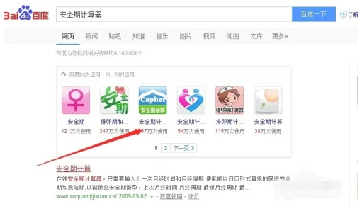 1、首先去百度搜索“安全期计算器”。