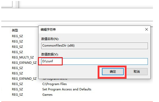 5、在右侧的窗口内找到并用鼠标双击“CommonFilesDir (x86)”文件,打开窗口后输入D盘的存放路径;