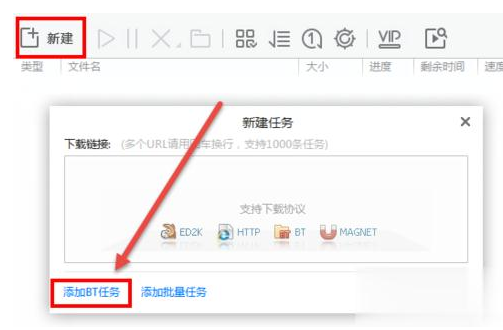 3、在弹出的新建任务框中,点击左下角的“添加BT任务”。