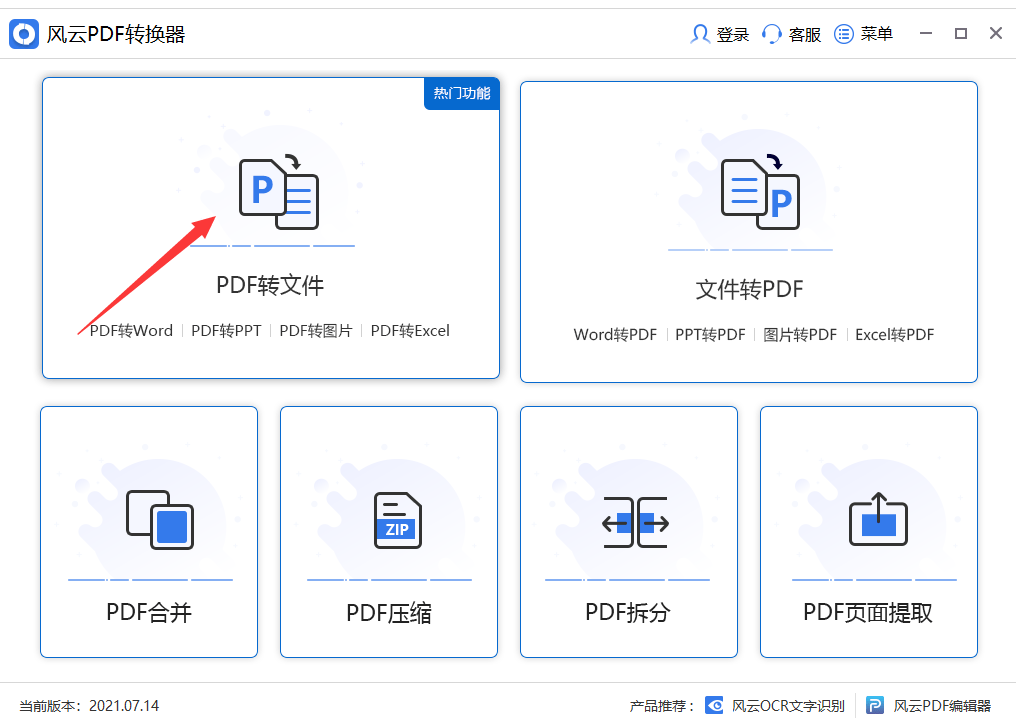 软件版本:风云PDF转换器2021.7.14