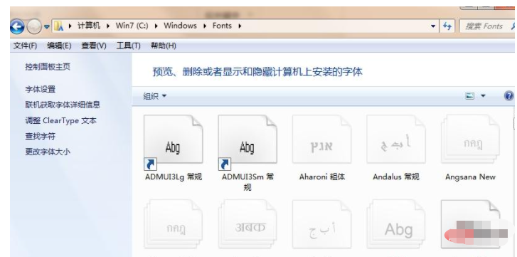 3、您也可以直接在文件中查找,具体位置在:C:\Windows\Fonts文件夹中。