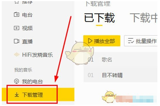 3、点击【我的音乐】之后,这个栏目下面的【下载管理】就可以查看自己的歌曲下载具体情况啦。