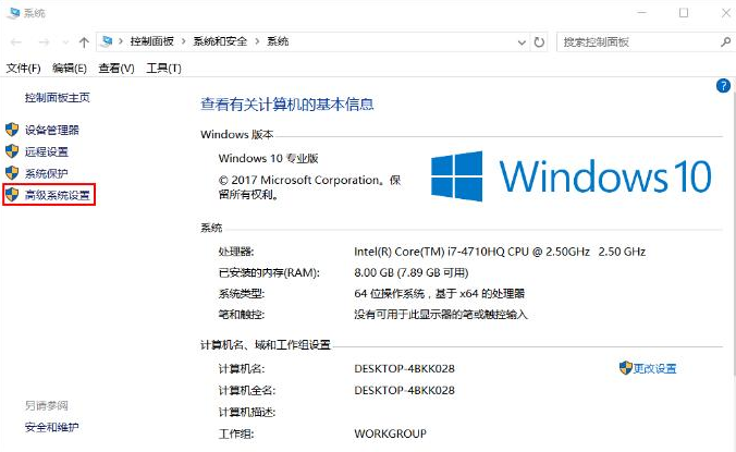 1、鼠标右键点击桌面上“我的电脑”>>“属性”,在弹出的界面上点击“高级系统设置”。