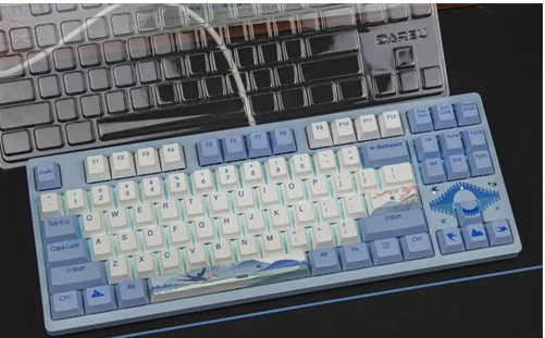 我们按Fn+PrtSc可切换常亮、呼吸、波浪、叠加以及下坠5种背光模式,并可调节背光亮度以及频率。